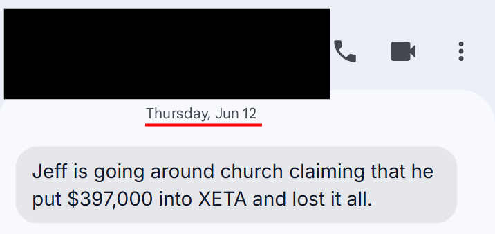 Image #2. Jeff Kaplan’s lies and attempts to blame me regarding his cryptocurrency gambling in “XETA”. Screenshot taken June 12th, 2025.